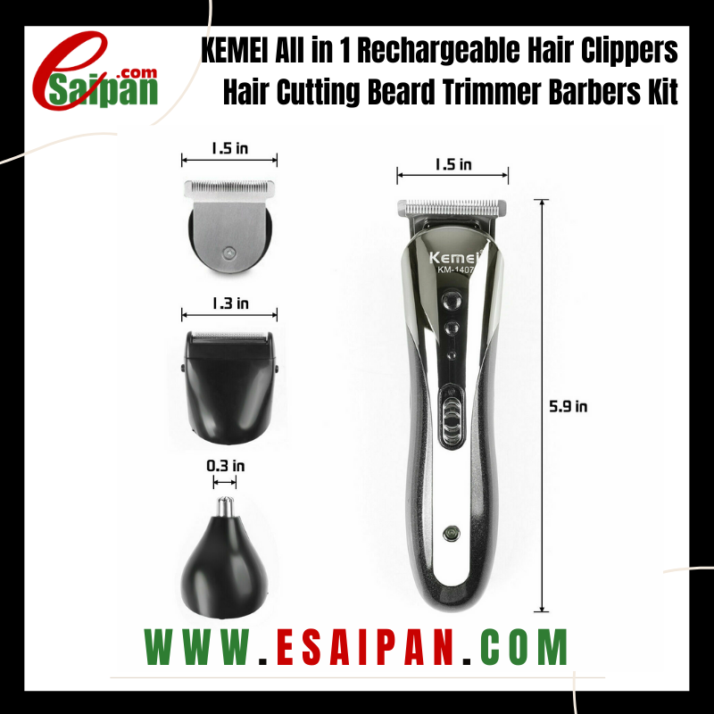 Home » Shop » KEMEI All in 1 Rechargeable Hair Clippers Hair Cutting Beard Trimmer Barbers Kit